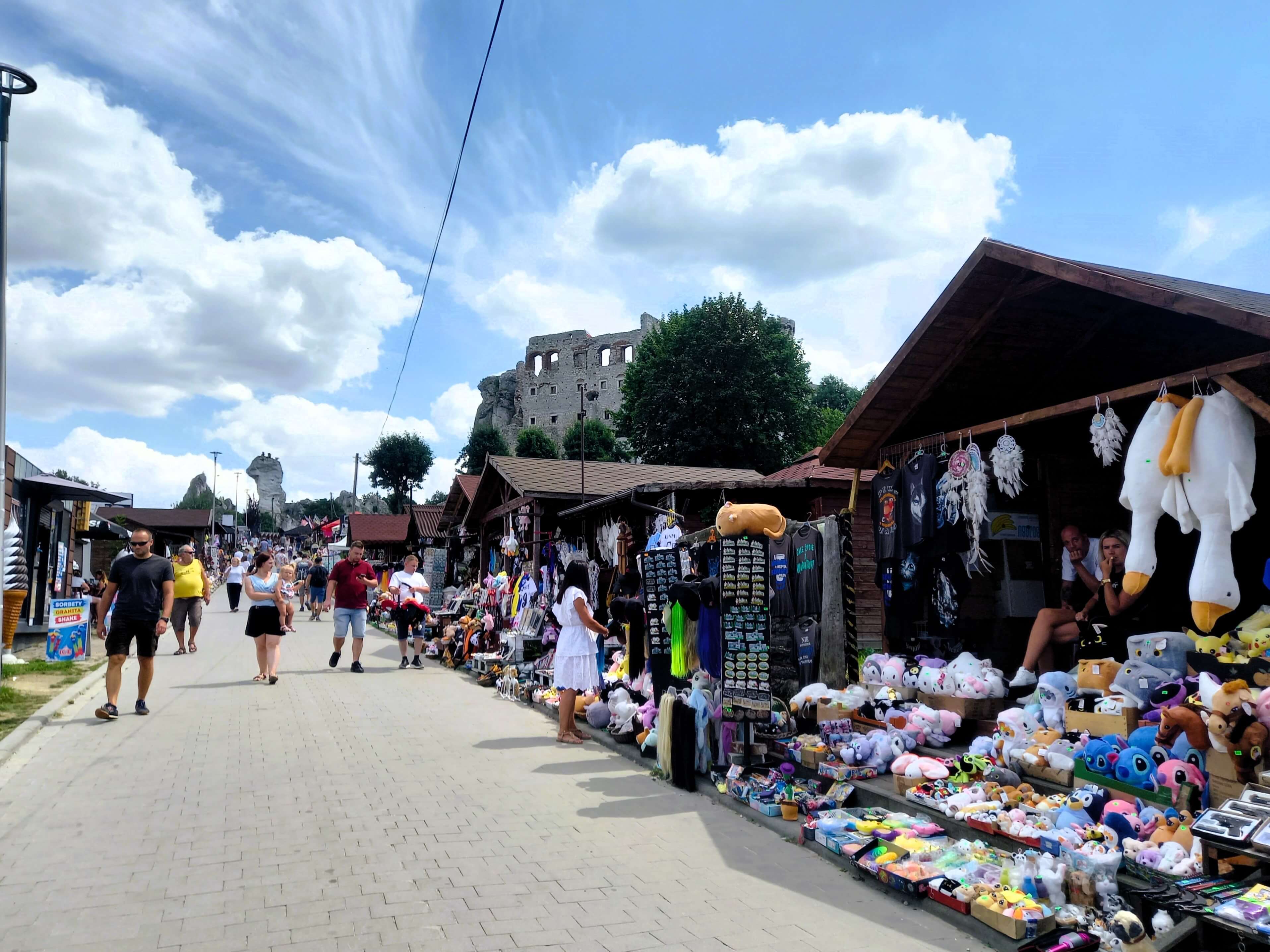 Zanim człowiek poczuje klimat średniowiecza, musi przejść przez uliczkę z kramami. Jest ich cała masa. Kolory. Dźwięki. Plastikowe miecze i „cudowne” pamiątki. Dorosły przewraca oczami, a dziecko nagle ma w sobie duszę kolekcjonera. U nas Emilka była jeszcze za mała na wyłudzanie zabaweczek, więc przeszliśmy spokojniej, ale widzieliśmy, jak łatwo to potrafi zmęczyć rodziny już na wejściu. To był dla mnie największy minus tej wycieczki. Jeśli macie dzieci w wieku „chcę wszystko”, serio warto ustalić zasady jeszcze przed startem.