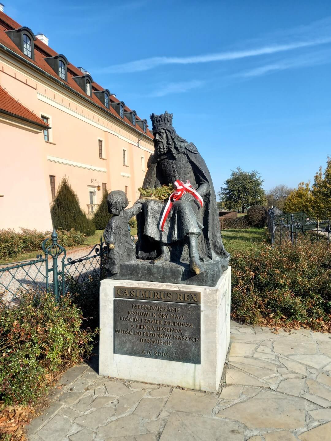 Zamek w Niepołomicach powstał w XIV wieku z inicjatywy Kazimierza Wielkiego jako rezydencja myśliwska w sercu rozległej Puszczy Niepołomickiej. Król często organizował tu polowania na tury, jelenie i dziki, zapraszając możnych z całego królestwa. Według miejscowej legendy monarcha lubił też odwiedzać okolicę incognito, by zobaczyć, jak żyją jego poddani. Dziś o fundatorze przypomina pomnik przed zamkiem – dumnie stojący strażnik królewskiej historii.