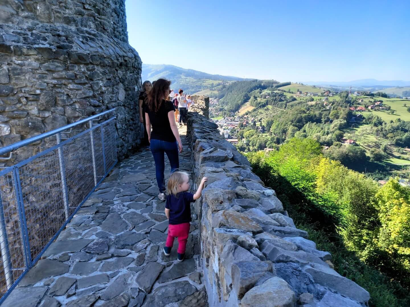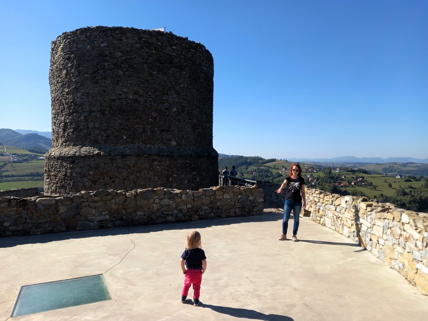 Niestety, wejście na wieżę nie było dostępne podczas naszej wizyty! Jednak widoki można swobodnie podziwiać z murów i są one zdecydowanie największym atutem Rytra. Góry wokół, w dole wijąca się rzeka Poprad, przestrzeń, powietrze i cisza. To nie jest zamek „do zwiedzania sal”, tylko do stania i patrzenia. I chłonięcia widoków.